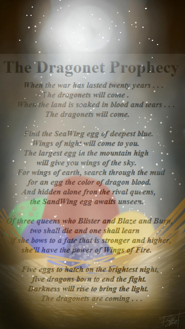 In online reader directly on the web page. The Dragonet Prophecy or just The Prophecy not to be confused with the first book of the Wings of Fire series that shares the same name is a prophecy depicting the end. WOF the dragonet prophecy rp quiz.