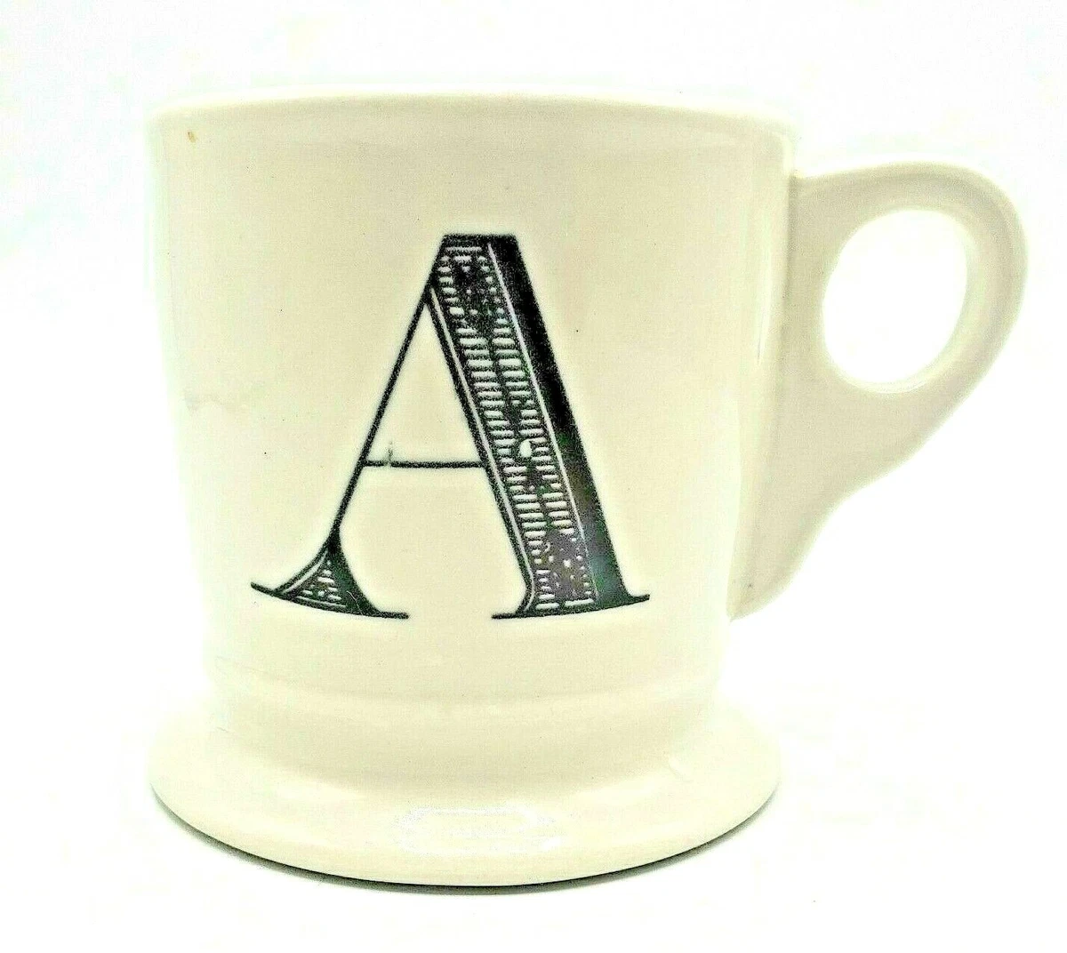 Anthropologie Monogram Mug Initial A White Black Footed Shaving Style 12 Oz Ebay